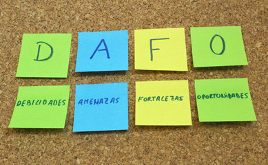 DAFO: El análisis FODA, también llamado análisis DAFO, es una herramienta de estudio de la situación de una empresa, institución, proyecto o persona, que consiste en analizar sus características internas y su situación externa en una matriz cuadrada.
