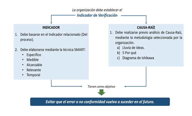 Una vez que la organización programe las verificaciones deberá de establecer el indicador de verificación.