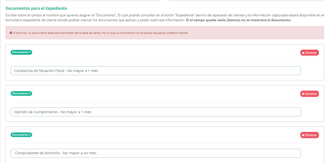 También, dentro de la plataforma, podrás configurar que documentos quieres que se suban de los clientes, dependiendo como el usuario vaya a requerir, lo puede administrar dentro de la configuracion de Clientes. Todo lo que requiera el usuario lo podrá hacer dentro de ISOADMIN.