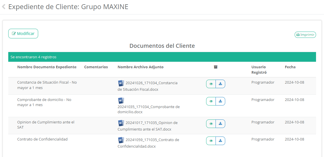 Si usted es de las empresas que aún tienen documentos, ya sea en carpetas dentro de su equipo de cómputo, muy desordenados en su organización, o si fuera el caso, tiene los documentos guardados físicamente en carpetas, ¡no se preocupe! Con ISOADMIN, esos problemas ya no existirán, ya que con la plataforma será muy fácil tener y visualizar los expedientes de sus clientes a su gusto.